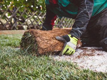 Preparation, sod rolls, and starter fertilizer for compact spaces